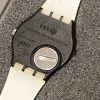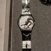 This particular model is a classic Swatch Gent, powered by a Swiss quartz movement and is water-resistant to 30 meters. The back of the strap often includes a printed signature from Annie Leibovitz. As a vintage and special edition item, it is a collectible piece