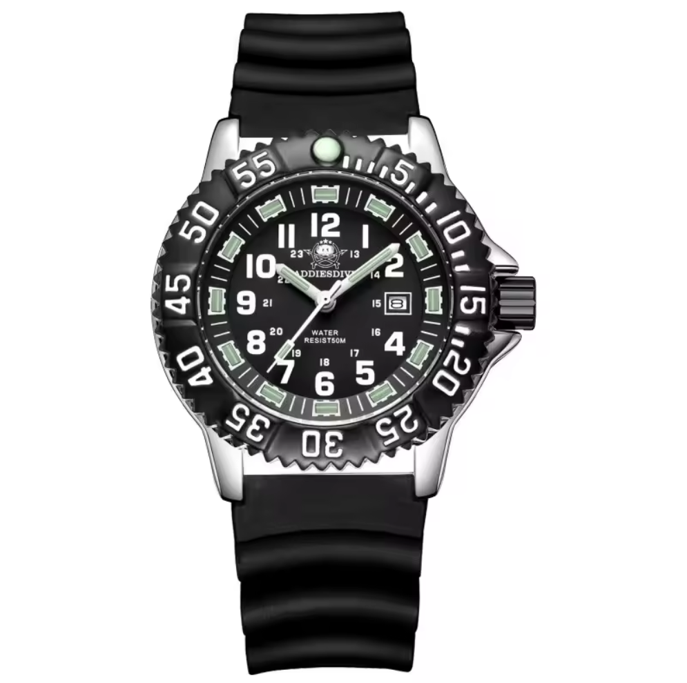 Addies Dive Men Fashion Casual Watch Calendar Display 50m Waterproof Tube Luminous Watch Black Dial Rotating Bezel Quartz Watch