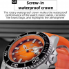 Dial: Orange with applied markers and BGW9 luminous hands & indices for excellent low‑light visibility