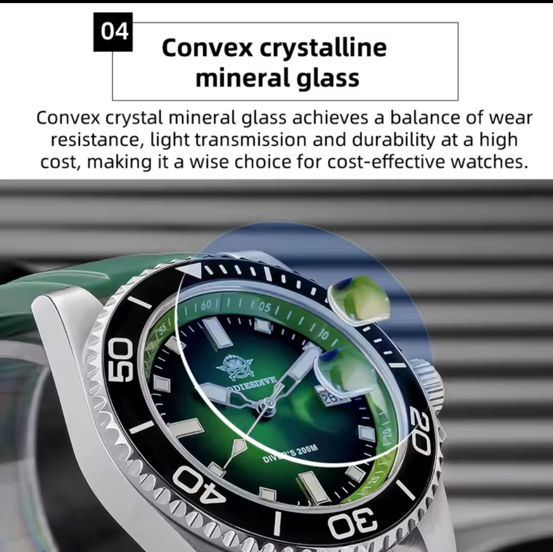 Water Resistance: 200 m / 20 Bar, suitable for swimming, snorkelling, and recreational diving