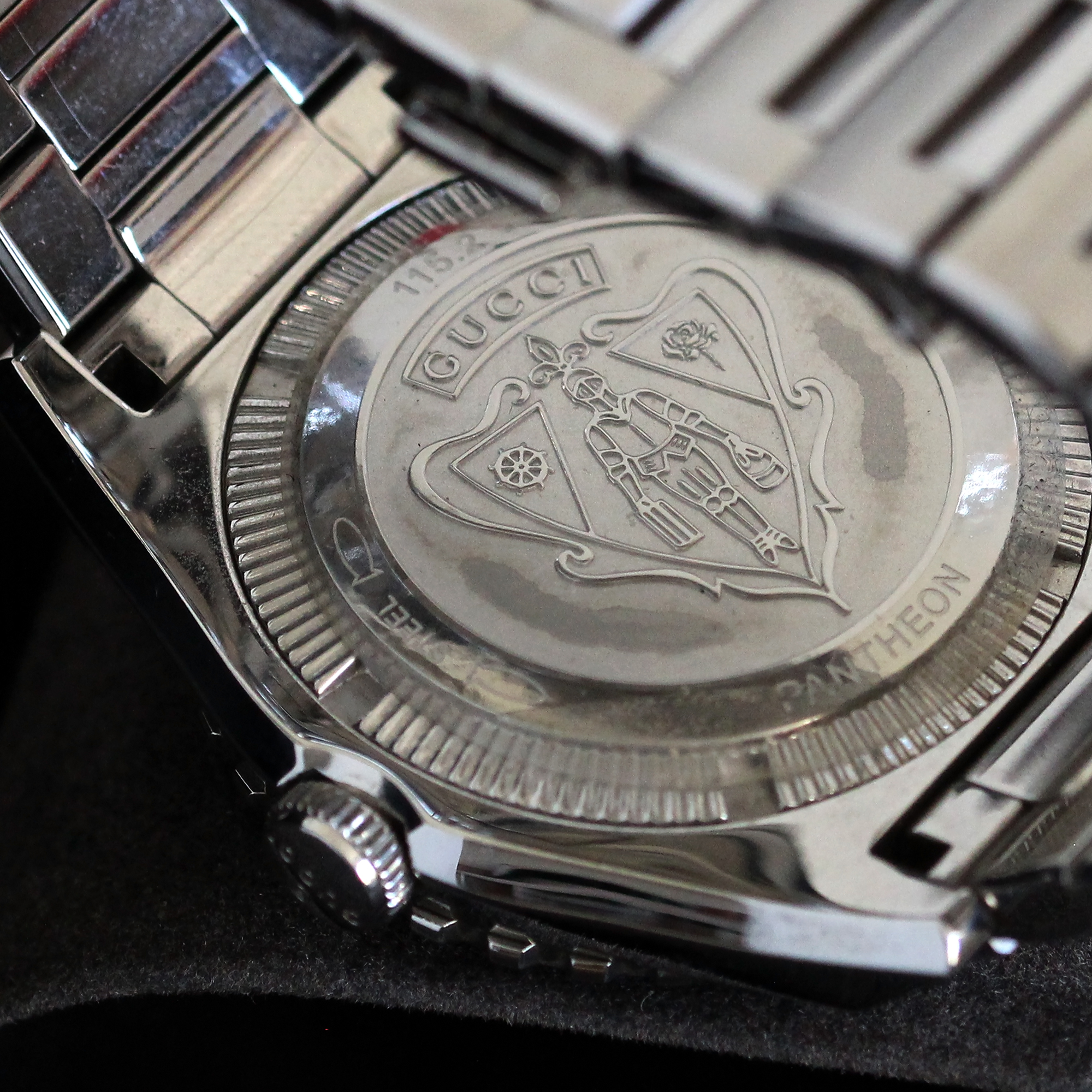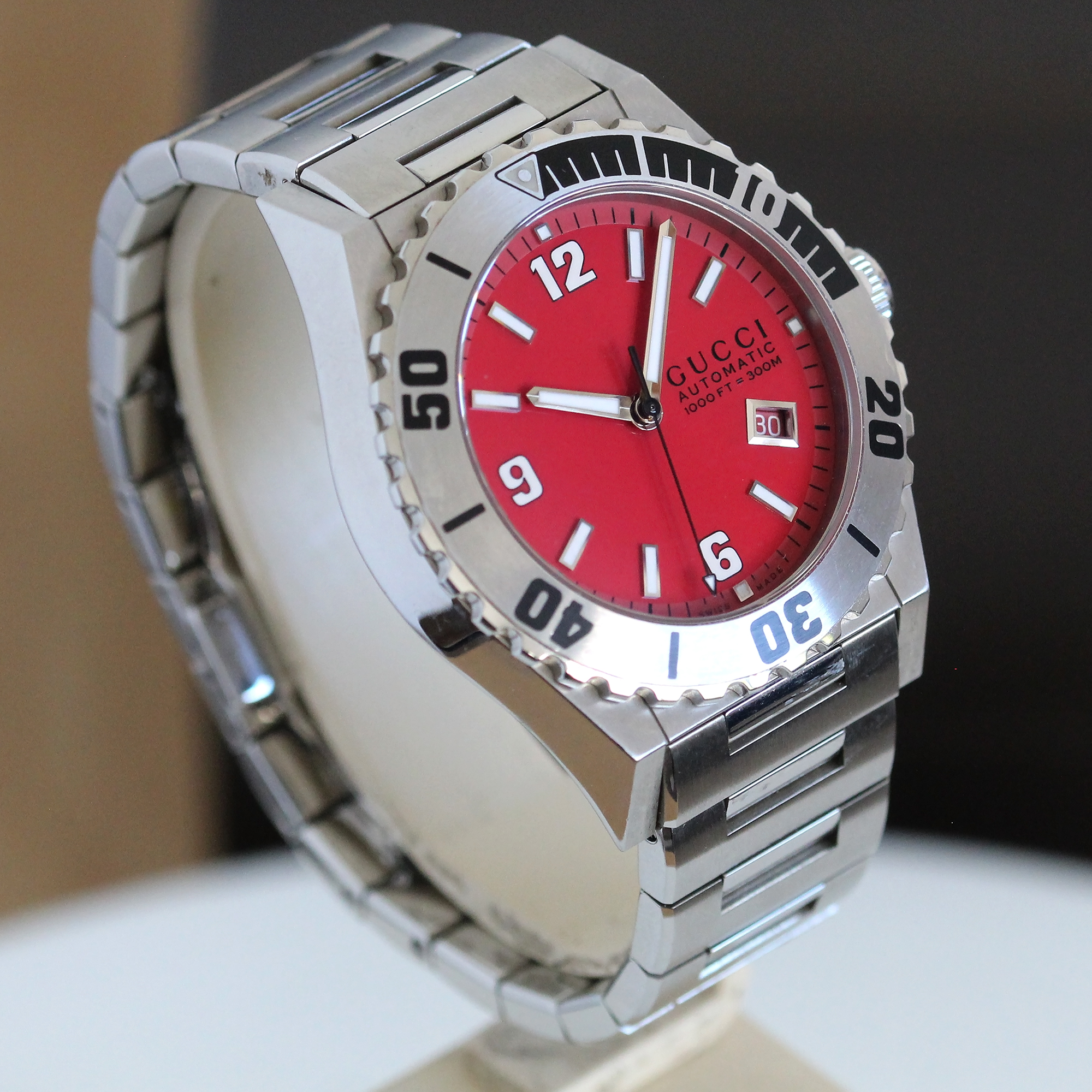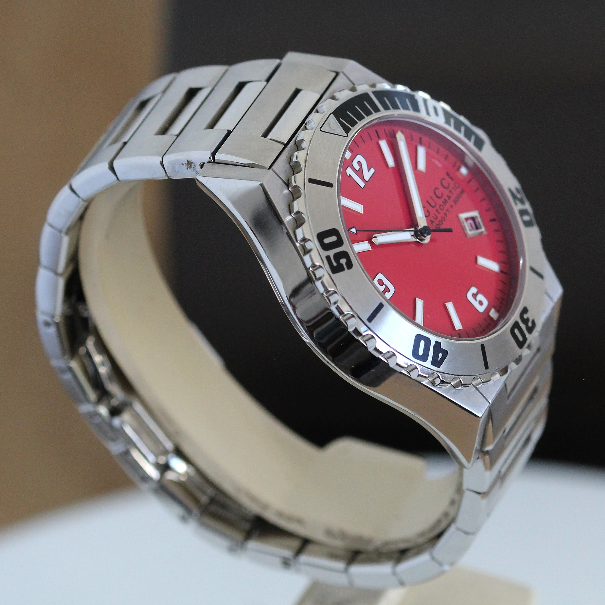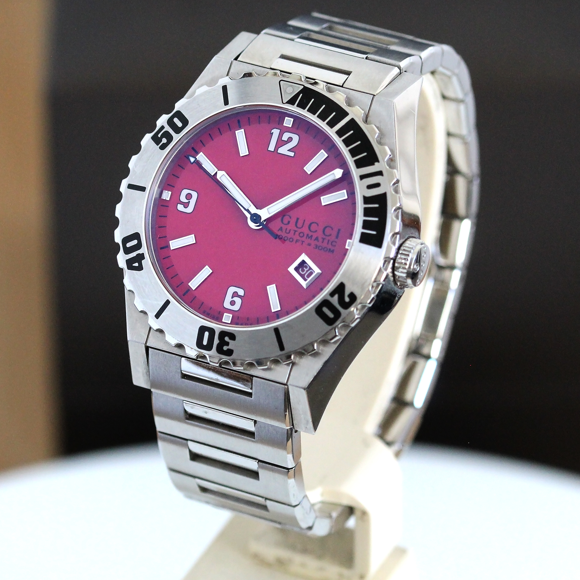 GUCCI Pantheon 115.2 43mm 300M Automatic Wrist Watch Red Pink Dial c.2011 Rare – Boxed