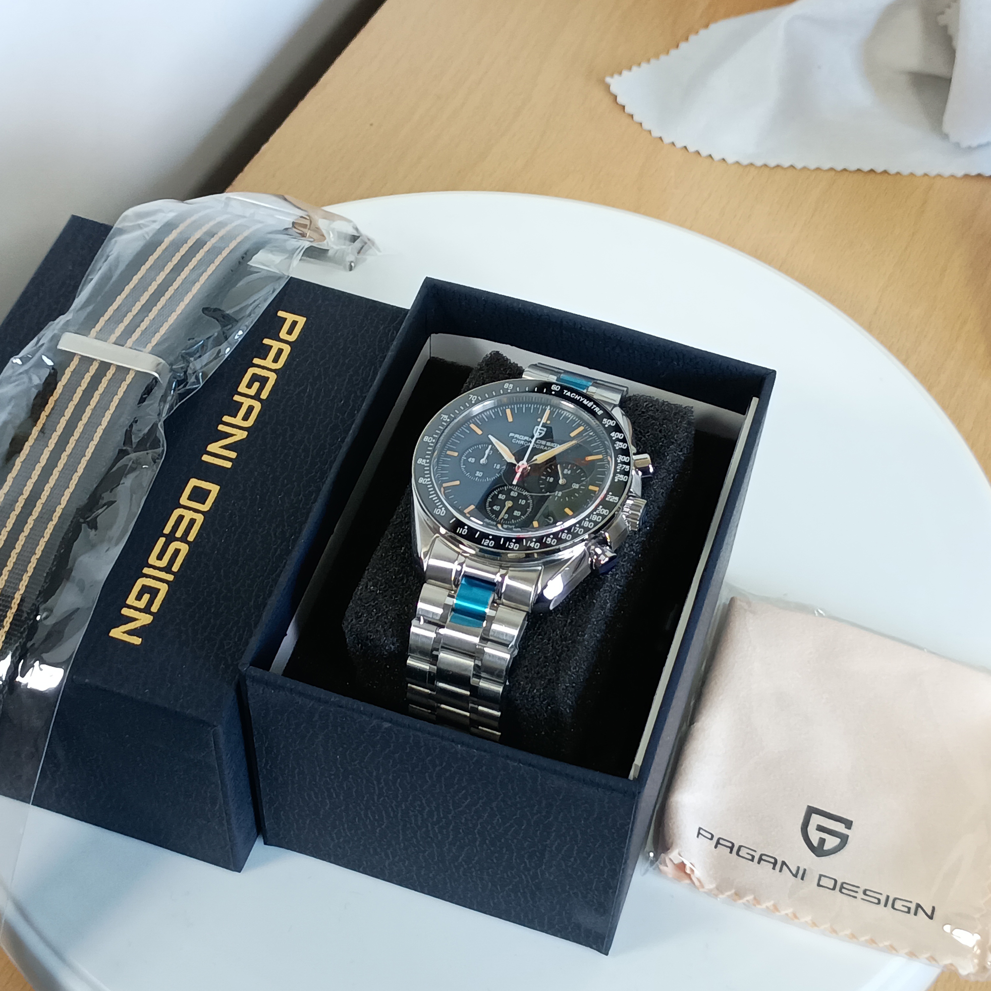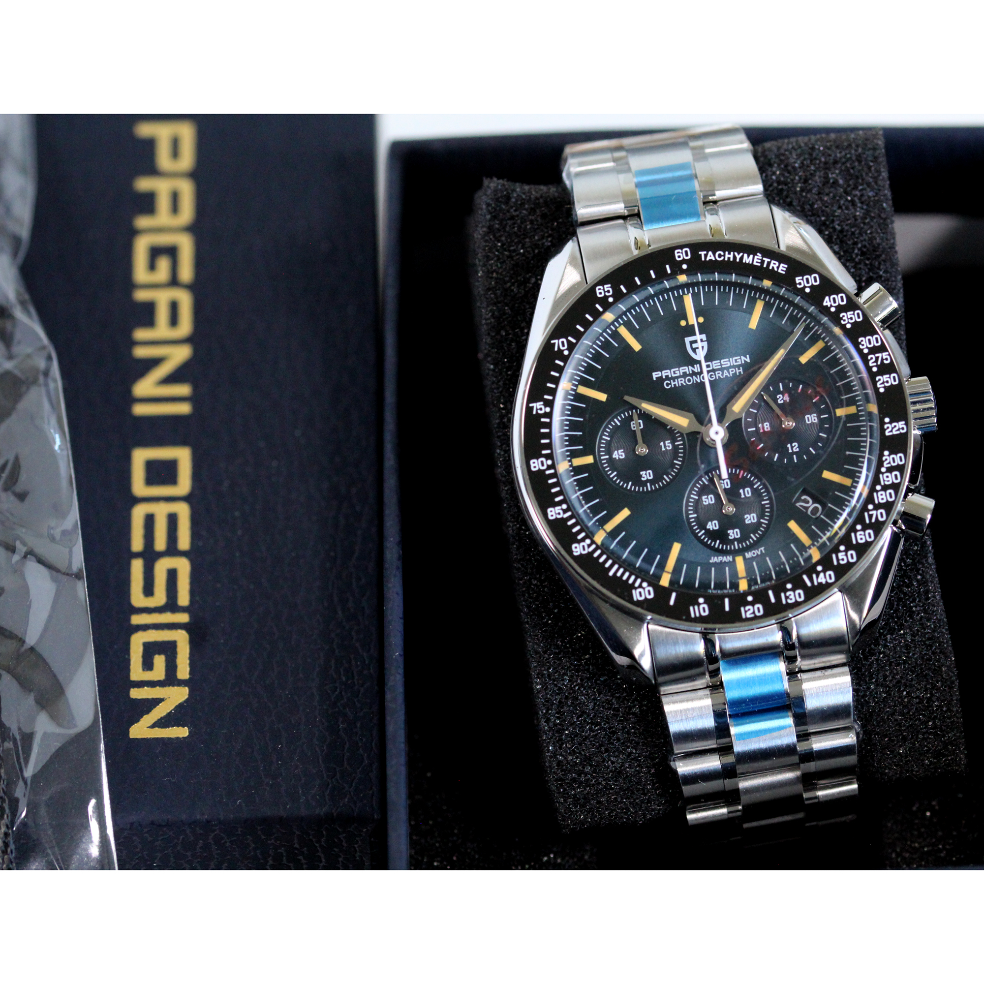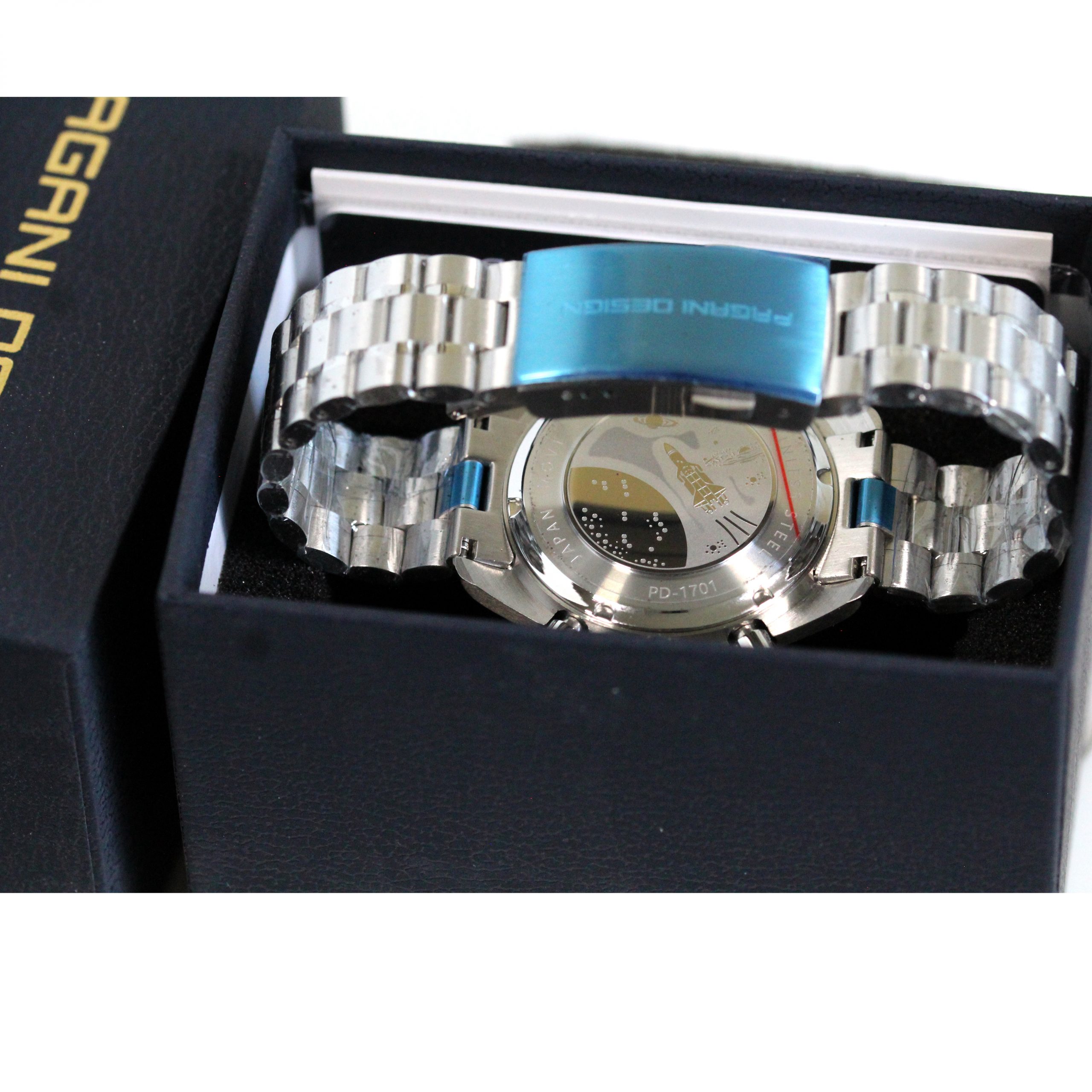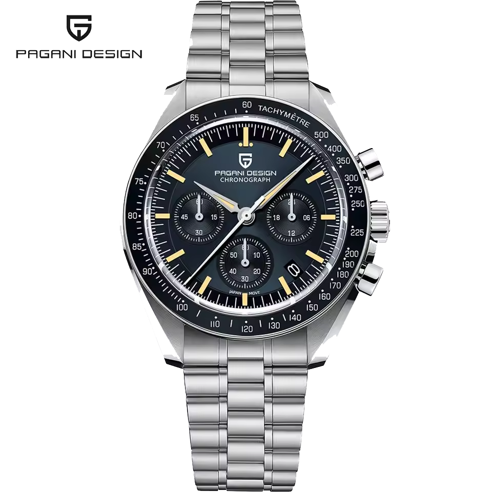 Stainless Steel Band:The PAGANI DESIGN Moonwatch boasts a stainless steel band for a luxurious, durable feel.