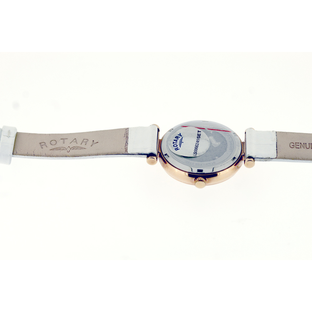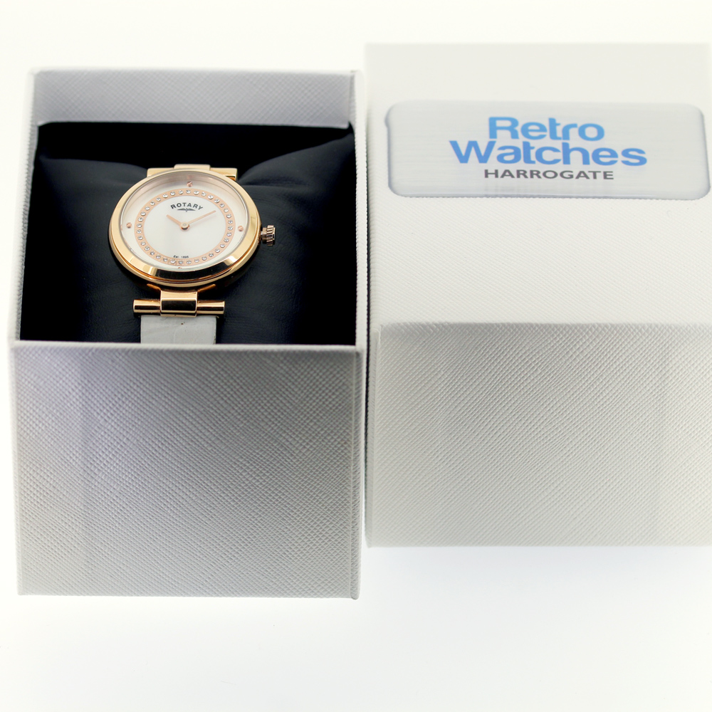 ROTARY Ladies 32mm Designer Watch Rose Gold MOP Crystals White leather LS00662/41 Genuine