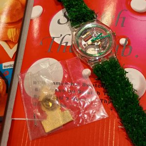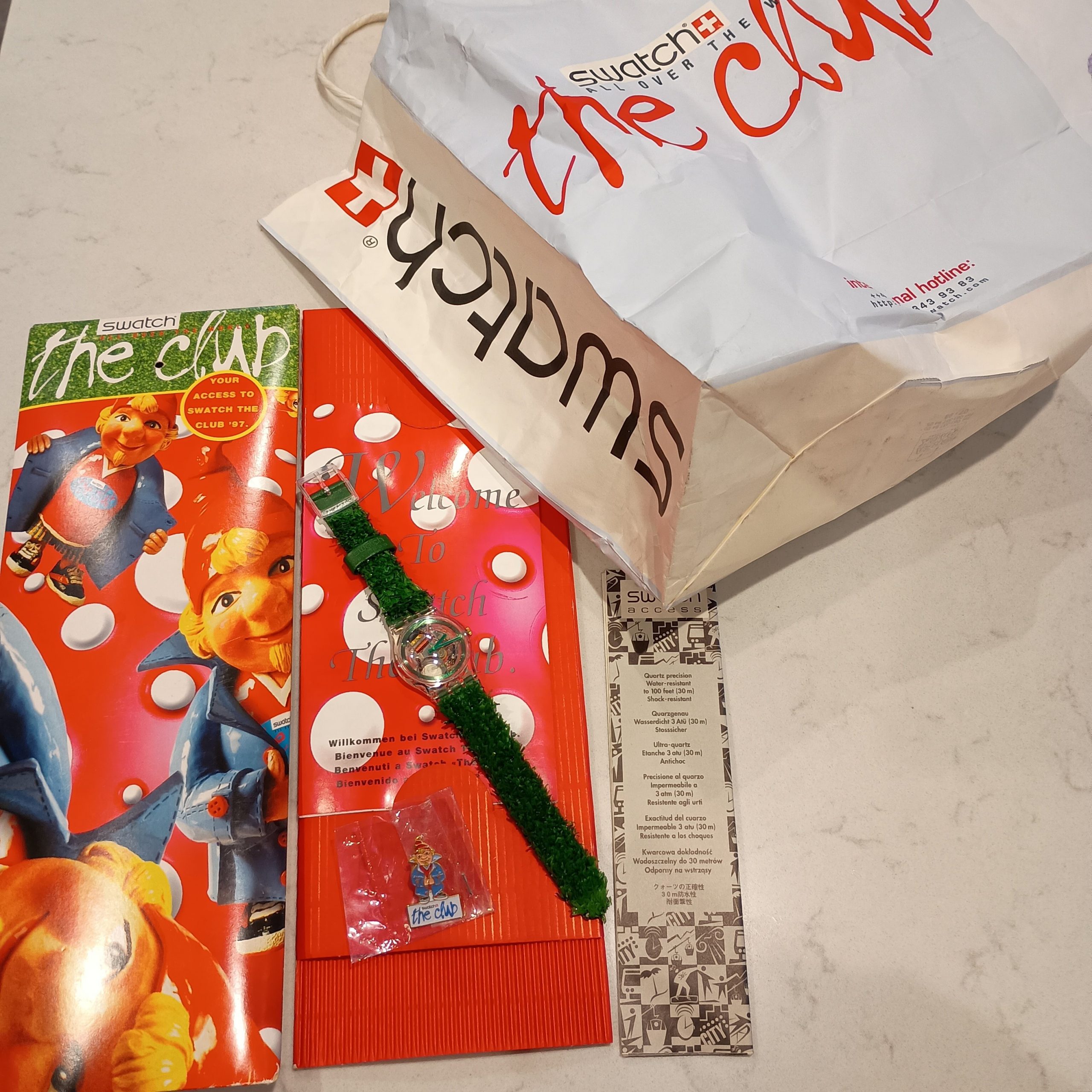 This is a Swatch Garden Turf (SKZ103) wristwatch released in 1997. It was a limited edition watch for “The Club” members.