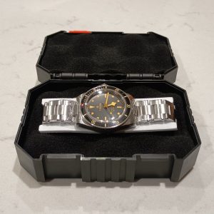 Crafted with utmost care, the case of this watch is made of 316L stainless steel, a material known for its strength and durability. The Uni-Directional Rotating Bezel adds functionality to the watch, allowing for easy tracking of elapsed time during dives or outdoor activities. The bezel is adorned with lume dots, providing enhanced visibility in low-light conditions.