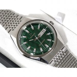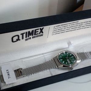 The Timex Q Falcon Eye TW2U95400 is a stylish reissue inspired by Timex’s classic designs from the late 20th century. Featuring a striking green dial, stainless steel case, and matching bracelet, this watch blends retro character with everyday practicality. Its compact 38 mm size makes it comfortable to wear, while the reliable quartz movement and day-date display ensure easy, accurate timekeeping for daily use.