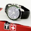 - Fixed stainless steel bezel with a green aluminium top ring showing tachymeter markings.