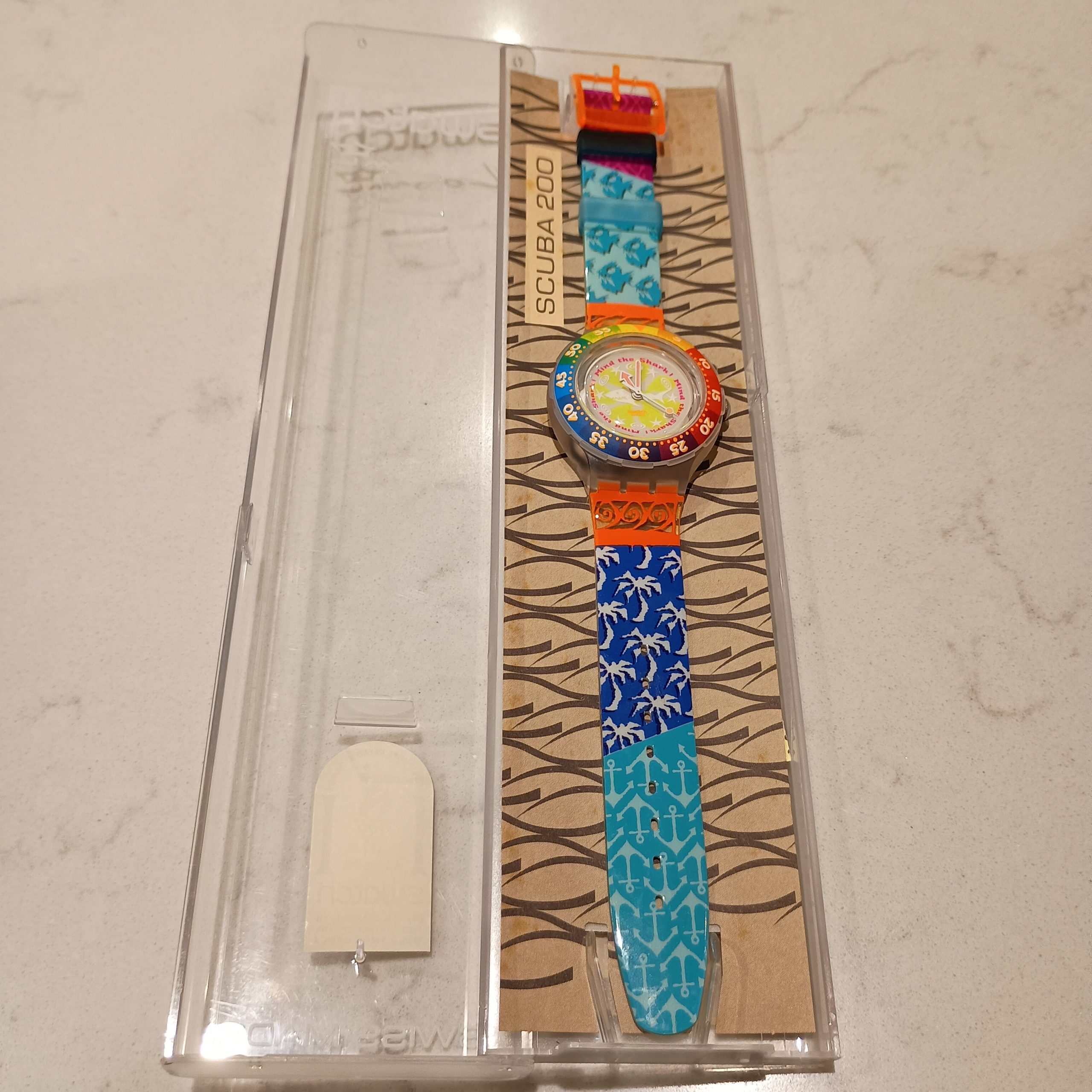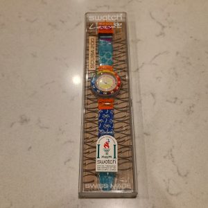 vintage 1995 Swatch Scuba Loomi SDK902 “Mind the Shark” watch