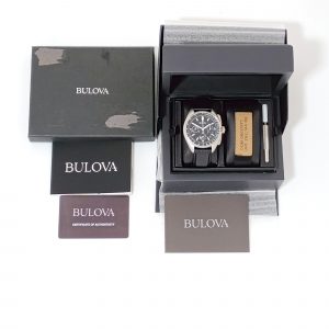 Bulova 96B251 Lunar Pilot Chronograph Special Edition (45mm) Black Dial / Black Leather + NATO Strap